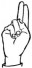 На ћирилици написано БЛАЖА ВУЛОВИЋ састоји се из 12 слова [?]. Исписано ћириличном једноручном азбуком за глувонеме: